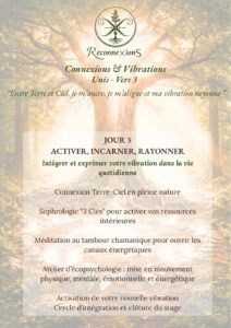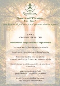 À travers des méditations d’ancrage, de la sophrologie énergétique, des connexions aux éléments, des voyages au tambour, des sons et vibrations, et des rituels du feu, tu apprendras à ressentir, ajuster et stabiliser ta fréquence intérieure.